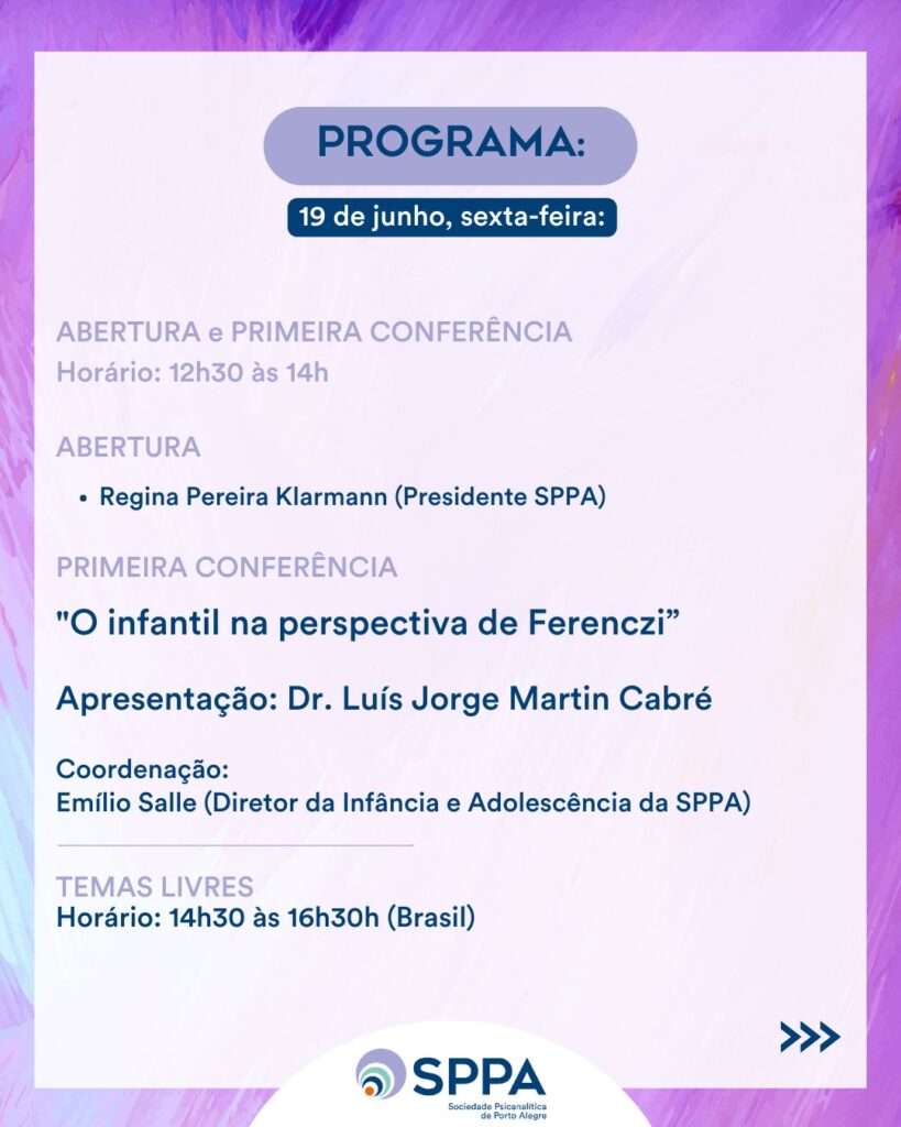 XXVIII Simpósio da Infância e Adolescência da SPPA “O infantil na perspectiva de Ferenczi”
