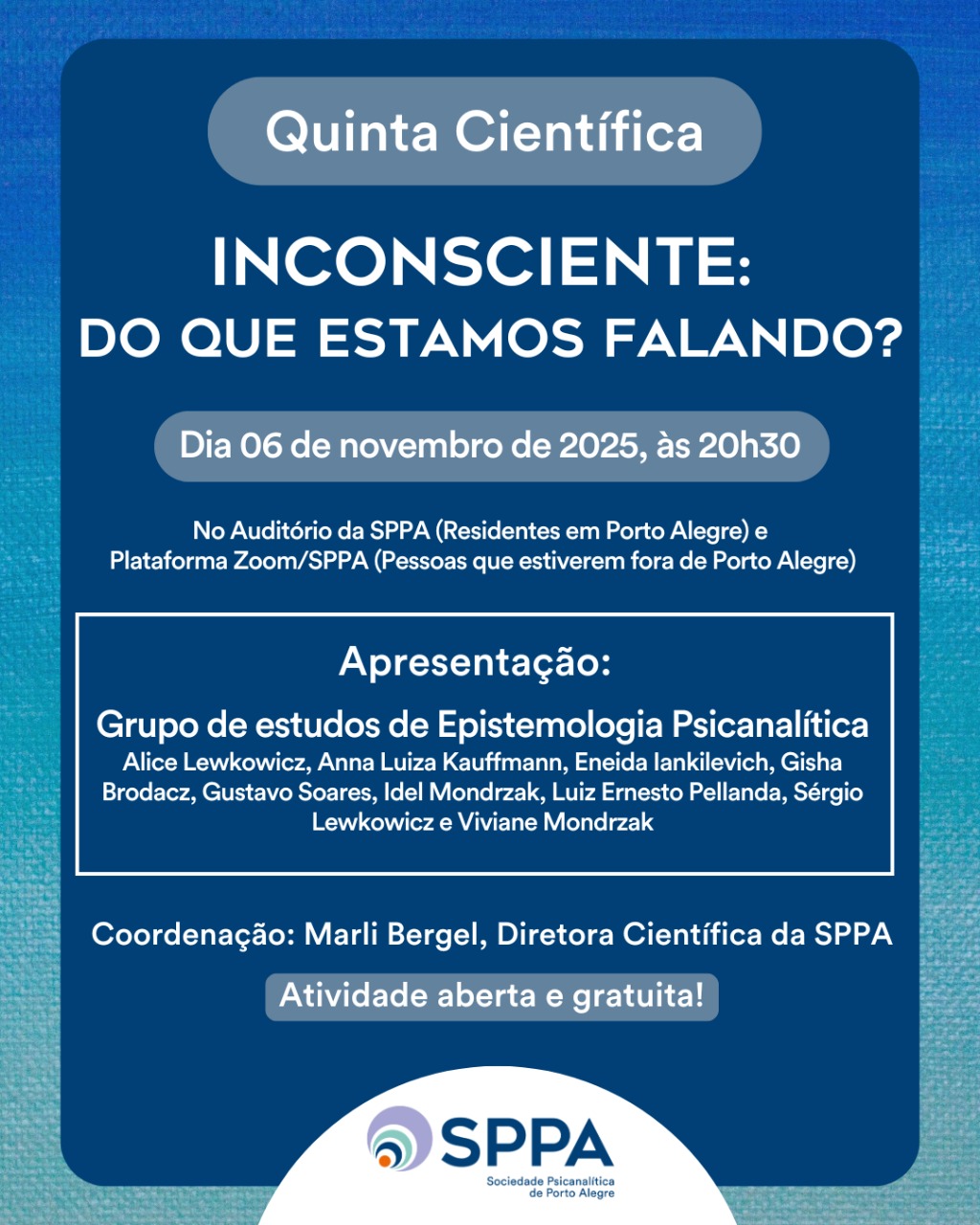 Convidamos para a Atividade Mensal da Diretoria de Ações na Comunidade "Ações Afirmativas - Desafios e perspectivas", no dia 28 de outubro (terça-feira), às 20h30 pela Plataforma Zoom/SPPA. Convidadas : Wânia Maria Coelho Ferreira Cidade Psicanalista e Membro Efetivo com funções específicas para o Instituto- SBPRJ, onde coordena a Comissão de Estudos Críticos sobre o... Leia mais »